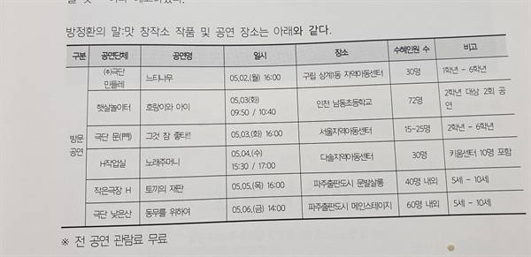 | ▲ 방정환의 동극 말;맛 일정표 그외에도 각종 행사프로그램들이 안내되어 었으니 아래에 있는 집행부 등의 연락처를 활용하면 좋을 것이다. |