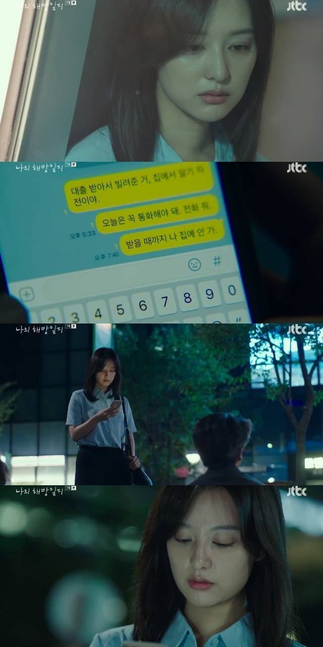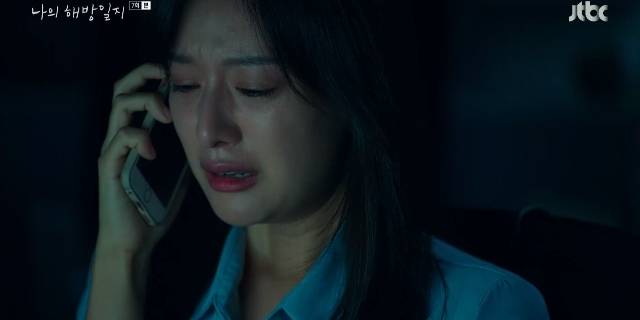 결국 염미정은 "어떻게 나한테 이래"라며 상처받은 마음을 드러낼 수밖에 없었는데. 그 후 전화 너머로는 물건을 부수며 화풀이 하는 전 남자친구의 소리가 들려 충격을 줬다. 염미정은 그 뒤 '어쩌다 이렇게 됐는지 모르겠다. 하나만 생각하기로 했어. 정찬혁 내 옆에 있는 동안은 죽게하지 말자'라는 전 여자친구의 문자를 받고 생각에 잠겼다. (사진=JTBC '나의 해방일지' 캡처)