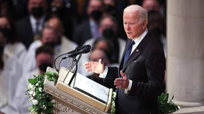 미국의 첫 여성 국무장관이었던 매들린 올브라이트의 장례식이 지난달 27일 워싱턴의 국립대성당에서 열렸습니다. 이 자리에 참석한 조 바이든 미국 대통령은 눈물을 보이며, 추모의 뜻을 밝혔습니다.