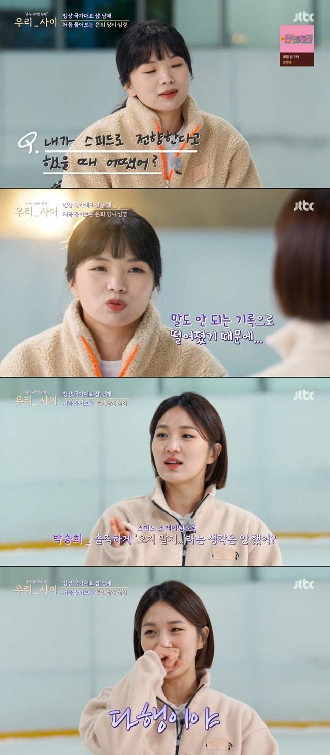 5월 2일 방송된 JTBC 예능 '우리 사이'에서는 박승희가 언니 박승주, 동생 박세영과 선수 생활 동안 쌓였던 오해를 풀고 서로의 진심을 알아보는 시간을 가졌다.