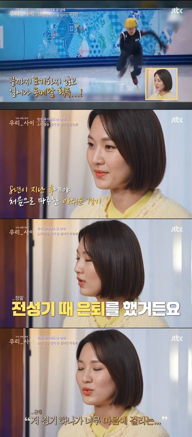 5월 2일 방송된 JTBC 예능 '우리 사이'에서는 박승희가 언니 박승주, 동생 박세영과 선수 생활 동안 쌓였던 오해를 풀고 서로의 진심을 알아보는 시간을 가졌다.