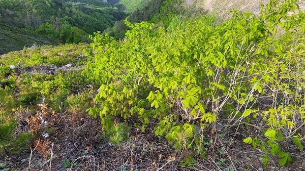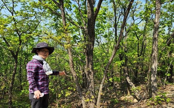 | ▲ 산불 후 소나무를 심은 현장엔 자연적으로 자라는 참나무들로 가득했다. 산림청은 숲가꾸기 한다며 참나무를 계속 베어내고 산불에 잘 타는 소나무 숲으로 바꾸고 있다. |
