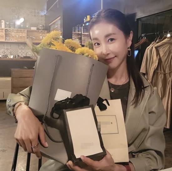 한다감의 우아하고 고급스러운 미모와 어울리는 명품 선물이 눈길을 사로잡는다.
