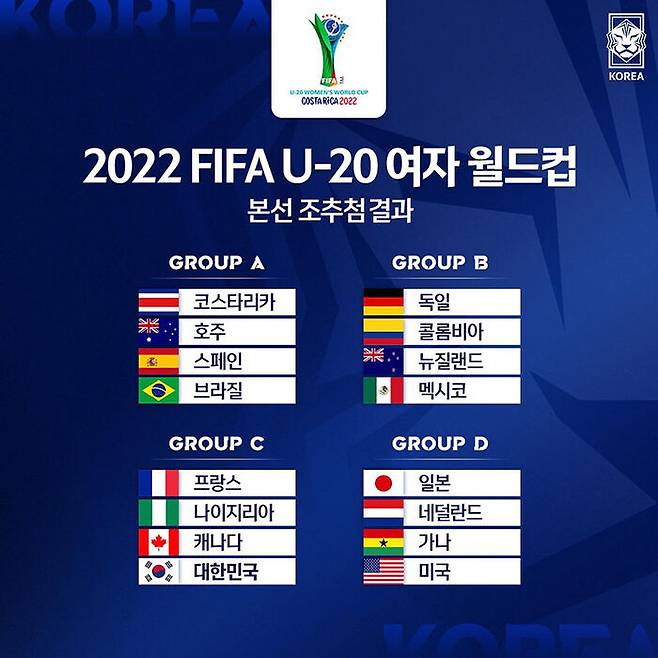 FIFA가 발표한 2022 U-20 여자월드컵 조 편성 결과에 따르면 우리나라는 C조에서 캐나다, 나이지리아, 프랑스 순으로 맞대결하게 됐습니다.