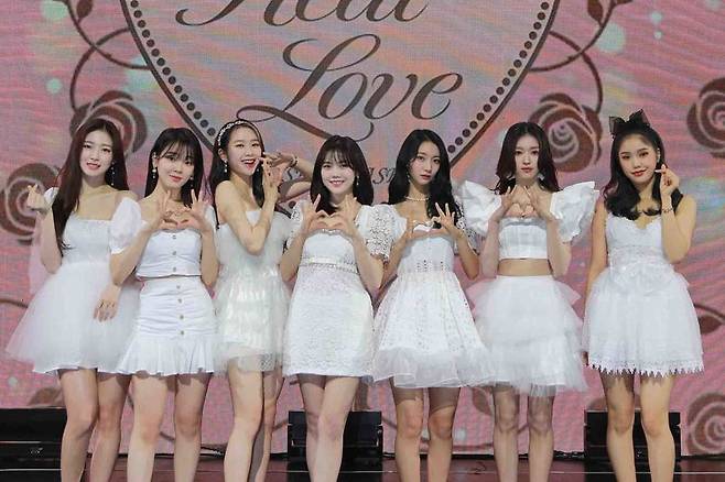 [정규 2집 쇼케이스서 포즈를 취하고 있는 오마이걸(WM엔터테인먼트 제공/연합뉴스)]