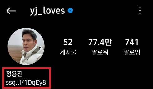 10일 오후 기준, 정 부회장의 인스타그램 메인 화면에는 ssg로 시작하는 단축 url이 적혀있다.