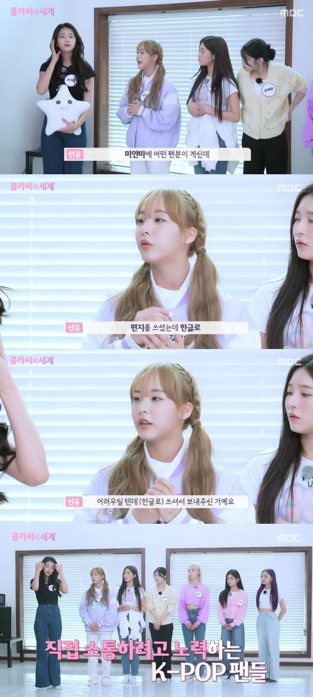 한편 같은 질문에 명형서는 손을 들고 "지금까지 활동했던 사진을 모아 영상으로 만들어준 팬이 있다. 정성이 느껴져서 감동 받았다"고 말했다. (사진=MBC '클라씨의 세계' 캡처)