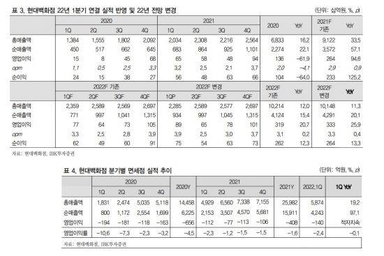 더현대는 MZ세대 매출 비중이 50%로 프리미엄 브랜드들의 입점도 속도를 내고 있어 연간 8000억원 매출도 충분히 상회할 것으로 보인다. 목동, 신촌, 대구 등 중형점도 리뉴얼로 리오프닝 시너지가 예상된다. 면세점은 중국 변수에도 올해 3분기 프리미엄 브랜드들의 대규모 신규 입점에는 무리가 없어 보인다. 공항점 내 명품 브랜드 효과로 면세 사업 전체적으로 경쟁 열위에서 벗어나고 있기 때문이다. 안 연구원은 "경쟁사들 대비 프리미엄 비중이 현저히 낮은 상황에서 올해 협상력 강화를 본격화하고 있어 하반기 대규모 MD변화와 매출 증가가 기대된다"고 강조했다.