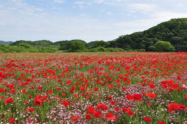 | ▲ 붉은 꽃양귀비가 그야말로 흐드러지게 피었다. |