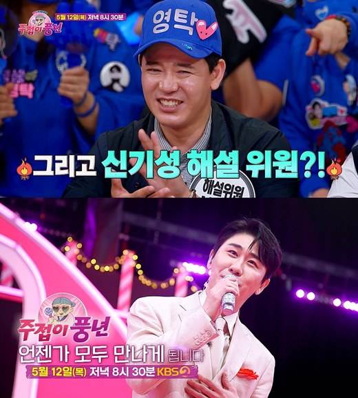 '주접이 풍년' 객석 신청률 역대 최고를 자랑한 만큼 다양한 개성을 갖춘 영탁 주접단에도 관심이 집중된다. 특히 최근 공개된 예고 영상에는 레전드 농구선수이자 해설위원으로 활동 중인 신기성이 영탁 굿즈를 착용한 모습이 포착돼 숨겨진 사연에 대한 궁금증이 증폭되고 있다.
