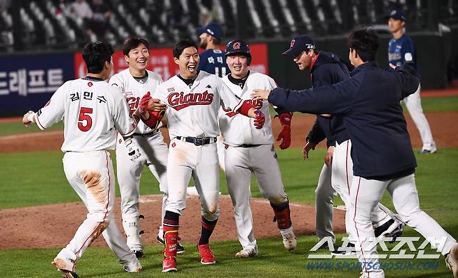 2022 KBO리그 롯데 자이언츠와 NC 다이노스의 경기가 11일 부산 사직구장에서 열렸다. 9회말 2사 1,3루 롯데 박승욱이 끝내기 안타를 날린 뒤 환호하고 있다. 부산=박재만 기자 pjm@sportschosun.com/2022.05.11/