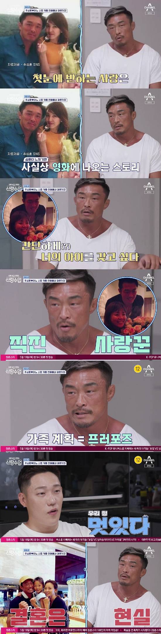 11일 방송된 채널A ‘요즘 남자 라이프-신랑수업’(이하 ‘신랑수업’) 15회에서는 추성훈이 출연, 절친한 운동부 후배 모태범과 특별한 하루를 보내는 모습이 전파를 탔다.