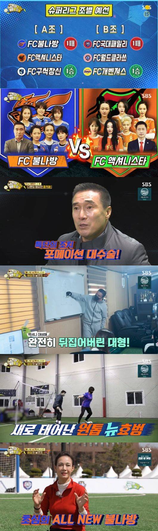 11일 방송된 SBS '골 때리는 그녀들'에서는 FC구척장신과 FC개벤져스가 각 1승, FC불나방과 FC국대패밀리가 각 1패를 기록한 가운데, FC 불나방과 FC 액셔니스타의 슈퍼리그 A조 두번째 경기가 펼쳐졌다.
