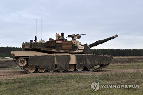 epa09940282 Abrams tanks from the US 4th Infantry Division from Colorado during combat shooting at the training ground in Drawsko Pomorskie, Poland, 11 May 2022. The international exercise Defender Europe 2022, which is an allied, cyclical exercise organized by the American military, is underway at many European training grounds. EPA/Marcin Bielecki POLAND OUT