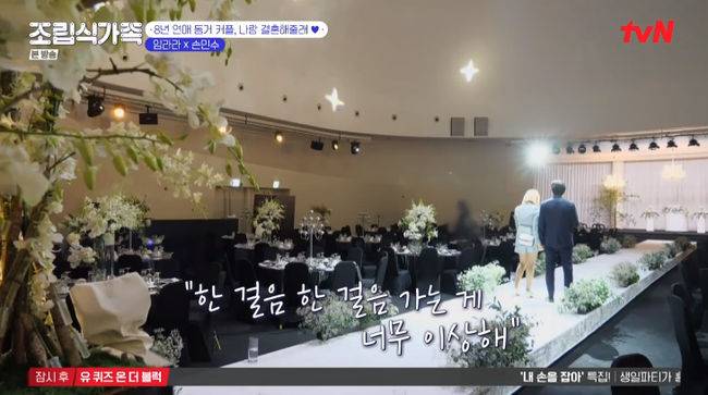 하지만 임라라는 신부대기실과 결혼식이 진행되는 메인 홀을 보더니 "드레스 입어볼수 있냐. 결혼 하고 가야할것 같다"고 흔들리는 모습을 보였다. 손민수는 "오늘 아무도 없고 허락 맡았다. 여기 걸어봐도 된다"며 임라라와 함께 버진로드를 걸어갔고, 이때 예식장 안에 임라라와 손민수의 모습이 담긴 영상이 띄워져 임라라를 놀라게 만들었다. 손민수가 임라라를 위해 함께 찍은 사진들로 영상을 만들어 특별한 이벤트를 준비한 것. 손민수는 "저희가 보내온 많은 추억이 있다. 이벤트 해주고 감정의 변화, 행복 선물하는게 우선이었다. 라라가 그걸 봤을때 우리 추억을 좀더 소중히 바라봐주고 행복해하는 것 같아서 좋았다"고 말했다.