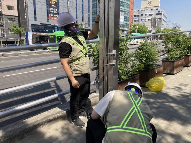 금천구시설관리공단, 풍수해 대비 현수막 지정 게시대 안전 점검 실시
