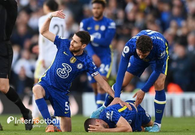 첼시는 킥오프 이후 4분 만에 마운트 선제골로 리드를 잡았다. 좋았던 분위기 속에 갑자기 먹구름이 드리웠다. 전반 23분 첼시 공격 상황 코바시치를 저지하는 과정에서 다니엘 제임스가 위험한 태클을 범했다. 볼이 아닌 정강이를 향한 태클이었기에 그야말로 위험천만한 장면이었다.