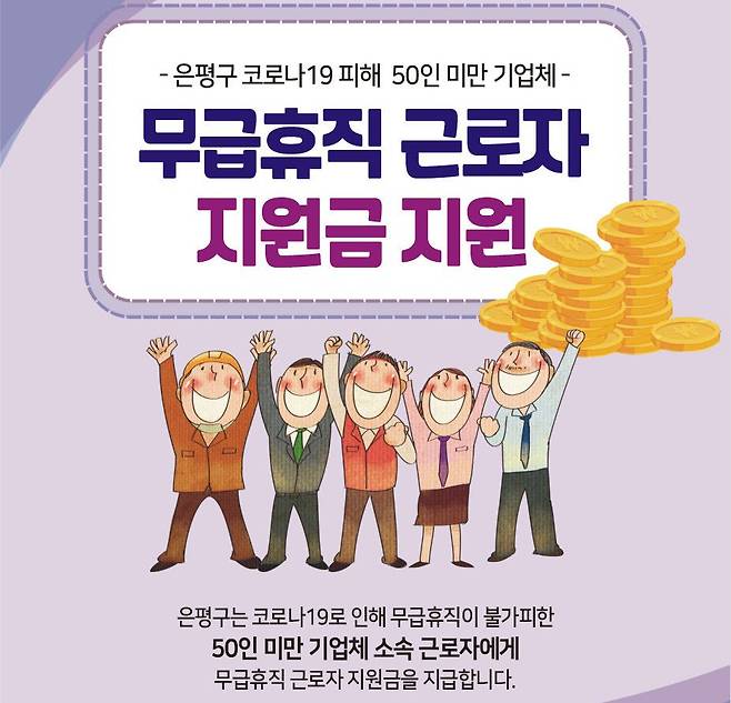 [헤럴드경제=최정호 기자]서울 은평구가 코로나19 장기화로 무급휴직을 시행한 50인 미만 기업체 근로자를 대상으로 4차 ‘무급휴직 지원금’을 지원한다고 13일 밝혔다.