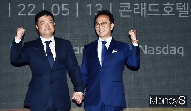 나스닥 상장 스팩합병 MOU 체결 기자간담회에 참석, 기념촬영을 갖고 있다.