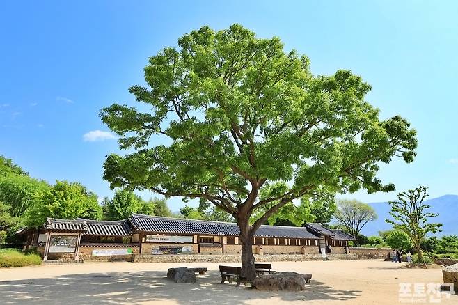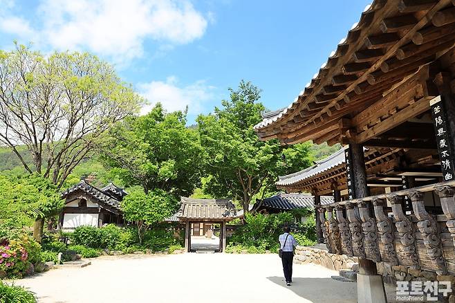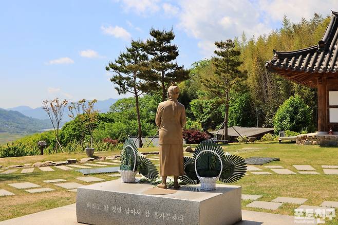 굽이치는 섬진강이 멀리 보이는 하동 최참판댁 5월 초록 풍경.