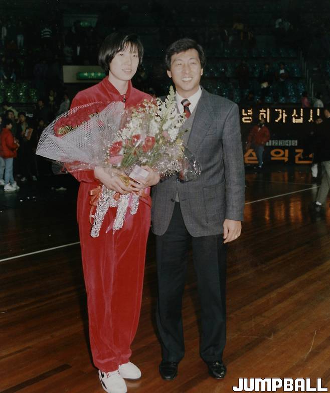 실업 4년차가 되면서 농구가 훤히 보이기 시작했어요. MVP에도 이때 선정됐죠. 외곽슛이 워낙 좋은 최경희 선배와 함께 이뤄낸 결과였어요. 제 기량은 절정이었고요. 우리 아버지는 마음이 여리셔서 우는 것을 많이 봤는데, 어려서부터 엄마가 우는 것을 한 번도 못 봤어요. 그 때 MVP 타고 나서 엄마가 저를 부둥켜안고 엉엉 울었죠. 그동안 고생한 것을 옆에서 보고 계셨기 때문에 더 그러셨던 것 같아요. 그 뒤로 정은순이 들어오면서 더 강해졌죠.