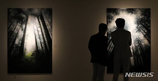 13일 부산 해운대 가나아트부산 전시장에서 희비가 교차했다. 짙푸른 나무들이 숲을 이뤄 쏟아내는건 환한 빛이었다. 명암이 극대화된 그림은 보기만해도 힐링됐다. 이옥경 서울옥션 부회장은 그림앞에서 짠함과 뿌듯함을 오갔다. "작가가 아직 완전히 몸이 낫지 않았어요. 그래도 붓을 놓지 않고 정말 깡으로 악으로 그린거예요."