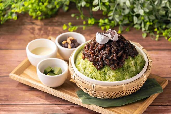 The matcha bingsu is served from matcha grown and produced in Japan’s Kyoto region. The bitterness of the flavor is harmonized with sweet ice cream and mochi toppings.