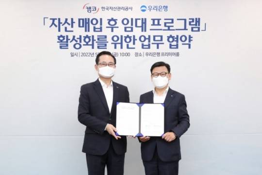 우리은행이 은행권 최초로 한국자산관리공사(캠코)와 자산 매입 후 임대 프로그램 활성화를 위한 업무협약을 체결했다.