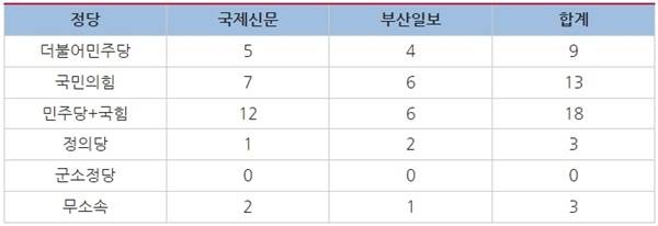 | ▲ △ <표4> 정당별 기사 건수(*중복 집계) |