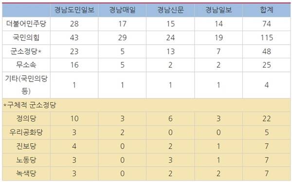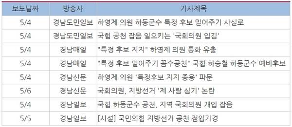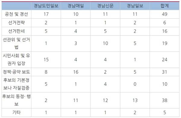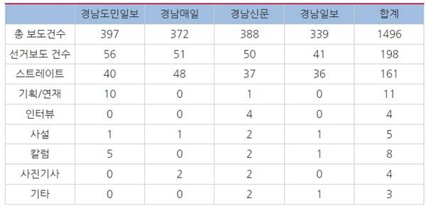 | ▲ 경남지역 일간신문 시민사회 및 유권자 입장 보도 세부내용 |