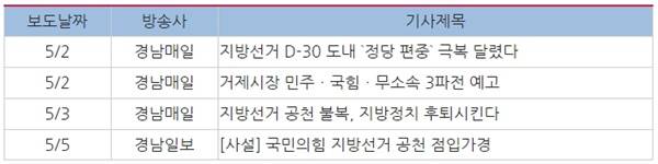| ▲ 경남지역 일간신문 ‘국민의힘 공천=당선’ 선거프레임 보도 |