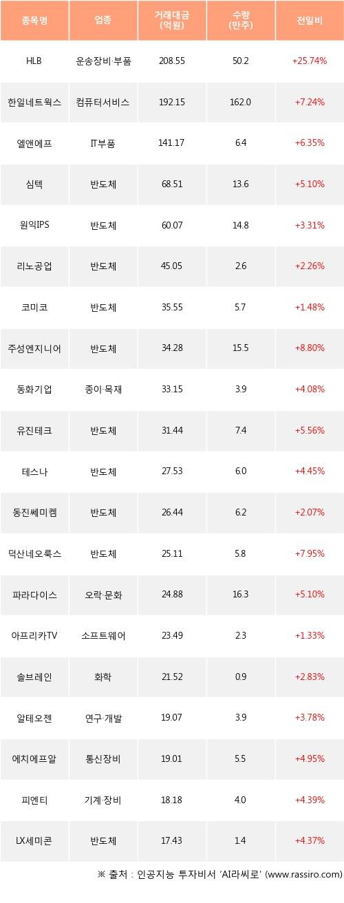 13일, 기관 코스닥에서 HLB(+25.74%), 한일네트웍스(+7.24%) 등 순매수