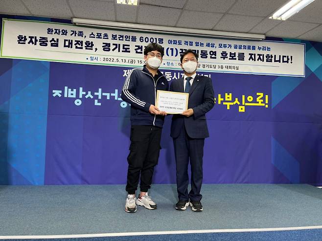 이에 지지선언에 참여한 김승원(더불어 민주당 수원갑) 의원은 “환자와 가족, 스포츠 보건인이 참여하는 소통구조를 확대하고 보건의료정책결정과정에 환자단체의 의견 전달이 더욱 확대되도록 시스템 구축에 노력하겠다”며, “누구나 환자가 될 수 있고, 고통받고 있는 환자와 가족들의 지원체계 마련 및 인식개선을 위한 교육, 프로그램 개발이나 협력 네트워크 구축에 나서겠다”고 말했다.