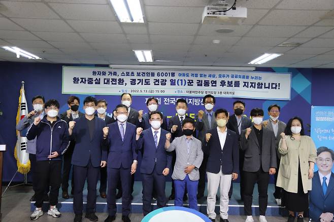 경기도의 환자와 가족, 스포츠 보건인 등 6001명은 13일 오후 3시, 더불어 민주당 경기도당 3층 대회의실에서 김동연 경기도지사 후보에 대한 지지를 선언했다.