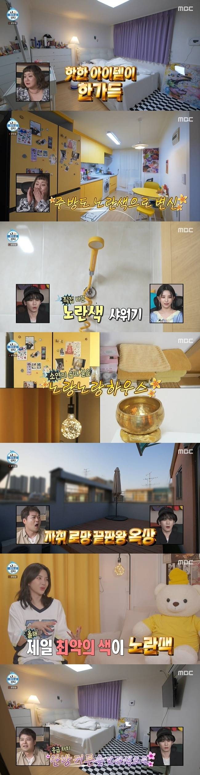 자취 6개월 차인 소연은 이날 방송에서 집을 공개했다. 아침에 일어난 소연이 거실의 노란색 커튼을 걷자 사방이 노란색인 집 내부가 공개 됐다.