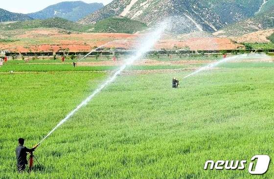(평양 노동신문=뉴스1) = 북한이 농업 수확량 증대를 위해 가뭄 피해를 막는 데 총력을 다하고 있다. 노동당 기관지 노동신문은 14일 "온 나라가 가뭄과의 투쟁에 모든 역량과 수단을 총동원, 총집중하고 있는 속에 조선농업근로자동맹(농근맹) 조직들에서 대중의 정신력을 적극 발동하고 있다"라고 전했다. 농근맹은 북한 농업부문의 선전선동을 담당하는 외곽단체다.