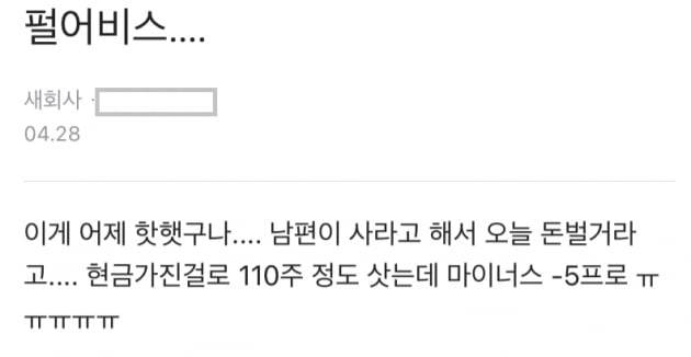 다른 주주는 “남편 권유로 110주를 샀다가 하루 만에 5%가 넘는 손실을 보고 있다”고 토로했습니다.