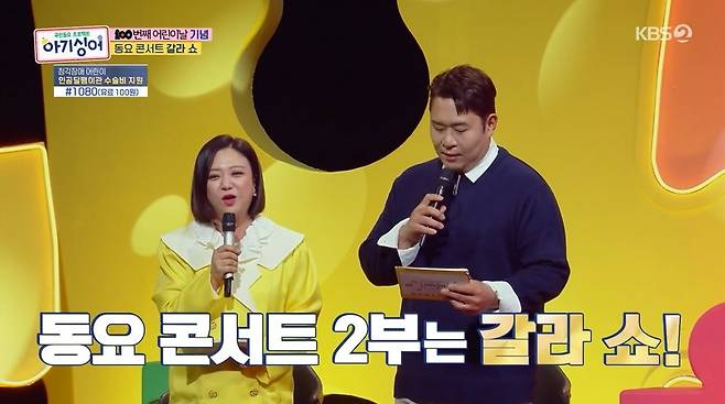 이날 동요 콘서트에는 VIVIZ 은하, 안예은, 부끄뚱(문세윤) 등이 라인업에 이름을 올려 아기싱어들의 스페셜 무대를 꾸몄다. (사진=KBS 2TV '아기싱어' 캡처)