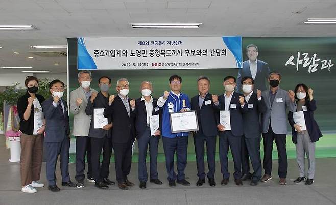 노 후보는 이날 중소기업중앙회 충북지역본부와 간담회를 열고 "충북에 중소기업 성장을 위한 최적의 산업생태계를 조성할 수 있도록 최선을 다하겠다"며 이같이 말했다.