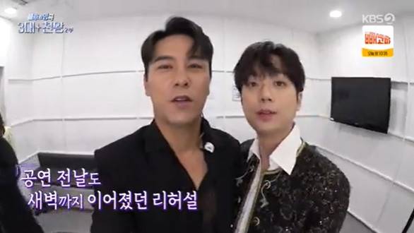 "3대 천왕 특집 준비 잘 했냐"는 장민호의 질문에 이찬원은 "어제도 새벽까지 연습했다. 민호 형은 두바이에서 입국하자마자 연습했다"며 무대를 향한 기대감을 높였다.