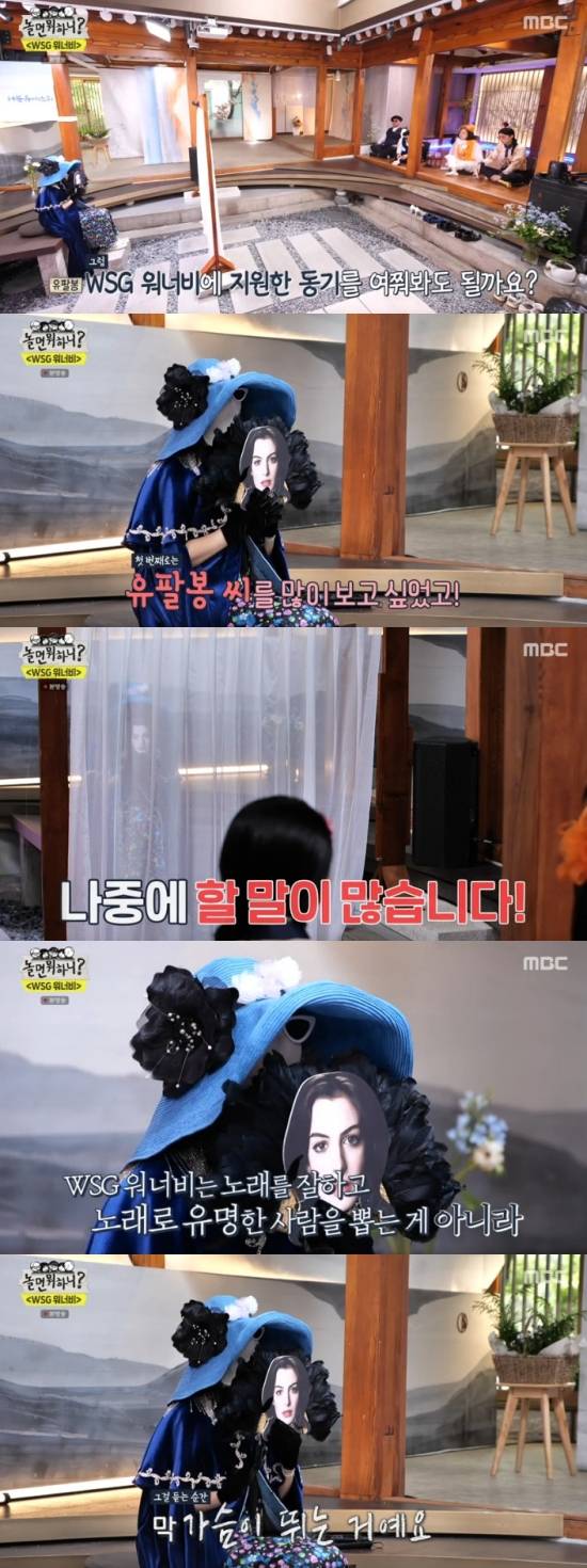 14일 방송된 MBC '놀면 뭐하니?'에서는 'WSG 워너비' 특집으로 꾸며진 가운데 유재석, 김숙, 정준하, 하하가 합격이 보류된 참가자들을 대상으로 오디션을 진행하는 장면이 전파를 탔다.