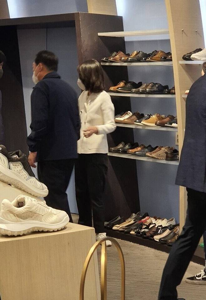 [서울=뉴시스] 전진환 기자 = 윤석열 대통령이 취임 첫 주말인 14일 배우자 김건희 여사와 비공식 외부 일정으로 광장시장과 강남의 한 백화점을 방문했다. 먼저 서울 종로구 광장시장을 찾아 빈대떡과 떡볶이, 순대 등을 구입해 포장했다. 이어 반포 고속터미널 옆에 있는 신세계백화점 강남점에서 구두 한 켤레를 구입했다. 예정에 없던 비공식 일정으로 최소한의 경호 인력만 함께 한것으로 알려졌다. (사진=독자 제공)2022.05.14. photo@newsis.com *재판매 및 DB 금지