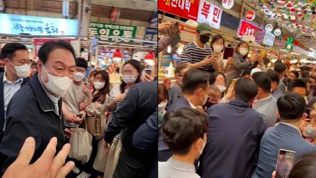 윤석열 대통령은 이어 서울 종로구의 광장시장을 찾아 늦은 점심을 먹으려 했지만, 단골 식당에 사람이 많아 빈대떡과 떡볶이, 순대, 만두 등을 사서 포장해 갔다고 대변인실은 전했습니다.
