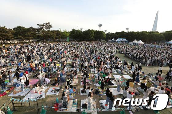 (서울=뉴스1) 신웅수 기자 = 14일 오후 서울 송파구 올림픽공원 88잔디마당에서 열린 뷰티풀 민트 라이프에서 시민들이 공연을 즐기고 있다.