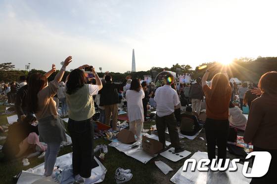 (서울=뉴스1) 신웅수 기자 = 14일 오후 서울 송파구 올림픽공원 88잔디마당에서 열린 뷰티풀 민트 라이프에서 시민들이 공연을 즐기고 있다.