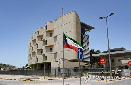 epa09946254 Kuwaiti national flags hoisted at half-mast as the country mourns the passing of President of the United Arab Emirates Sheikh Khalifa bin Zayed Al Nahyan, in Kuwait City, Kuwait, on 14 May 2022. Kuwait Amir Sheikh Nawaf Al-Ahmad Al-Jaber Al-Sabah ordered a 40-day mourning and flags flown at half-mast while government departments would cease working for three days as of Friday following passing away of President of the United Arab Emirates (UAE) Sheikh Khalifa bin Zayed Al-Nahyan, Kuwait News Agency (KUNA) said. EPA/Noufal Ibrahim