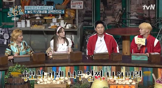 14일 방송된 tvN '놀라운 토요일'에서는 세븐틴의 멤버 도겸, 민규, 승관이 게스트로 출격했다.
