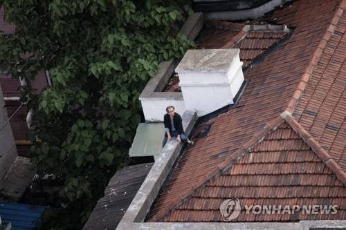 epa09946320 A man sits on the roof of his home at a residential compound, amid the ongoing COVID-19 lockdown as China continues to enforce its zero-COVID policy, in Shanghai, China, 14 May 2022. EPA/ALEX PLAVEVSKI