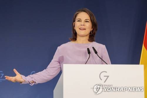 epa09946339 German Foreign Minister Annalena Baerbock speaks during a press conference after the meeting of foreign ministers of the G7 member states at the Schlossgut Weissenhaus venue near Oldenburg in Holstein, Germany, 14 May 2022. The three-day conference is focusing on the current Russian war in Ukraine. The foreign ministers of Ukraine and Moldova are also attending. EPA/Morris MacMatzen / POOL