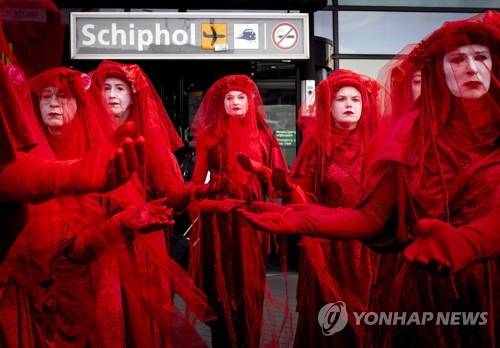 epa09946400 Residents near airports and environmental activists gather to protest at Schiphol, Amsterdam, Netherlands, 14 May 2022. Similar actions of protest are taking place at the regional airports in Eindhoven, Rotterdam, Maastricht, Groningen and Lelystad. The activists protest against growing nuisance and pollution from air traffic. EPA/KOEN VAN WEEL